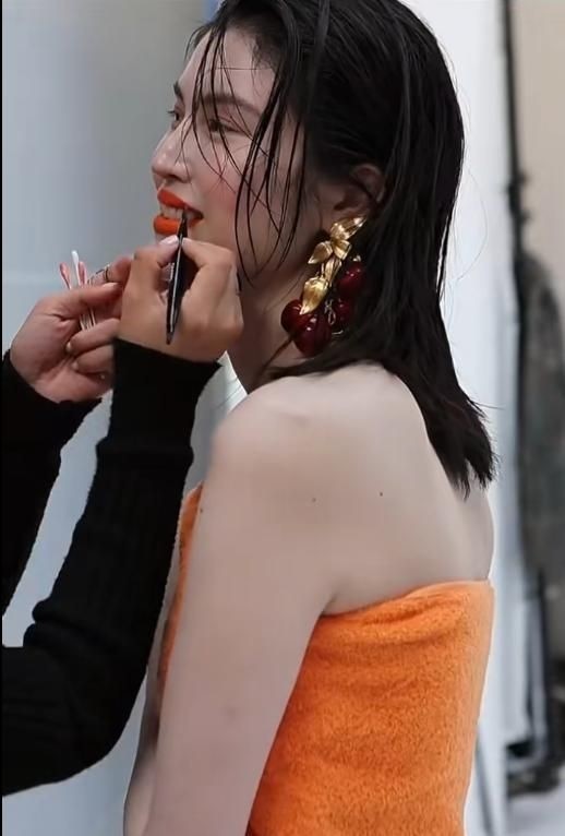 妆容方面,她采用了近乎素颜的清透处理方式:底妆极薄贴肤,仅用浅棕系眼影轻扫眼尾提神,睫毛根部清晰分明却毫无浓重痕迹,唇色选用接近自然唇色的豆沙调,温婉亲切宛如身边挚友。